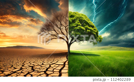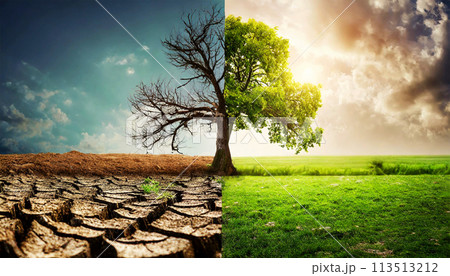 The Global Warming Concept - Half Bare and Half Green Tree - Generative Ai