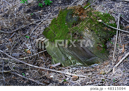 Closeup of waste or damaged coconut dumped in ground. A view of old rotten coconut on the ground.
