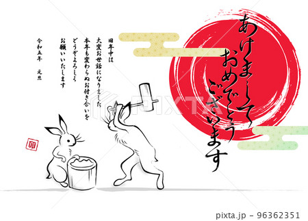 年賀状 餅つき兎 鳥獣戯画風
