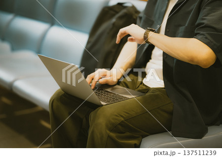 駅でノートPC作業 _■撮影協力:関西国際空港(KIX)