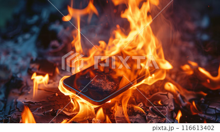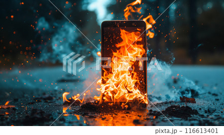炎上しているスマートフォン