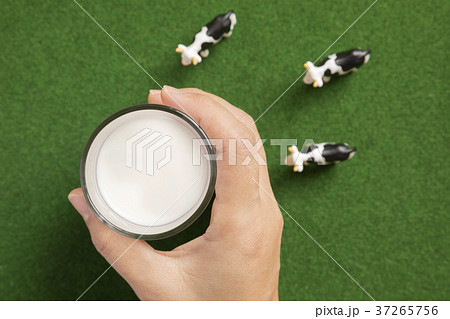 牛乳の入ったグラスを持つ女性手元