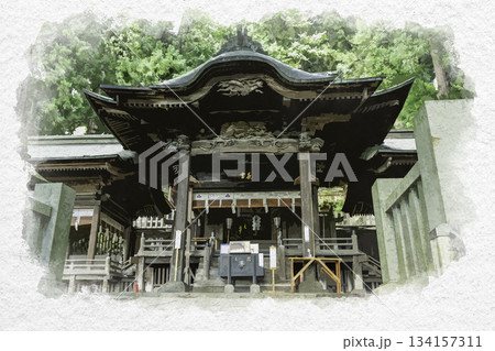水彩画風 上諏訪 手長神社 鳥居と手水舎 長野県諏訪市