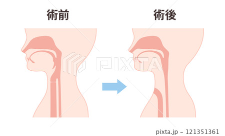 喉頭癌の術前術後の気管のイラスト