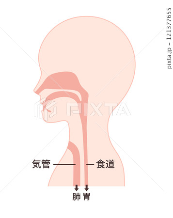 喉頭癌の術後の気管と食道のイラスト