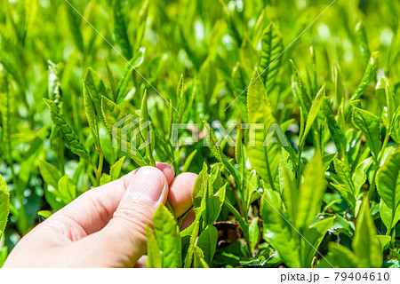 お茶 茶園 茶畑 茶葉を摘む手