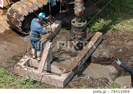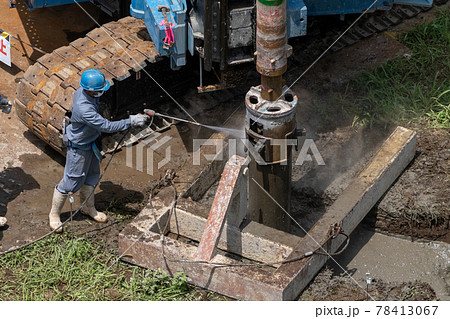 建築現場 基礎工事 摩擦杭 埋込み完了