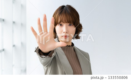 ストップ!制止する女性・ビジネスウーマン