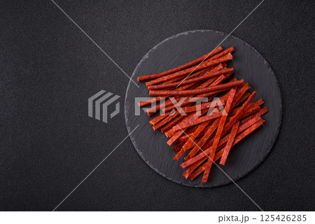 Jerky dried fish sticks with salt and spices