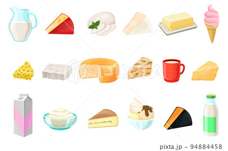 Dairy Products Including Milk, Butter, Cheese, Yogurt, Cottage Cheese, Sour Cream and Ice Cream Big Vector Set