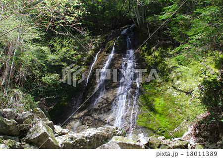 七種の滝(なぐさのたき)の滝下にある虹ヶ滝の新緑風景「近畿観光百景」「兵庫県指定名勝」「兵庫県八景」