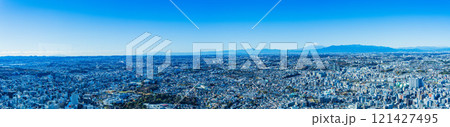 【神奈川県】横浜ランドマークタワーから望む西横浜の街並みと富士山(パノラマ撮影)