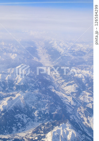 飛行機から眺める雄大なアルプス山脈のとても美しい冠雪風景