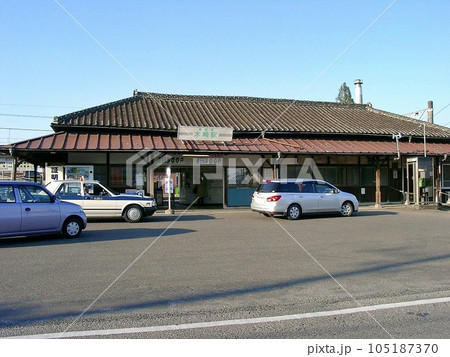 「東武鉄道木崎駅(2010.11)」 駅舎全景。チョコ色の瓦屋根が美味しそう。ロータリーも最小限で