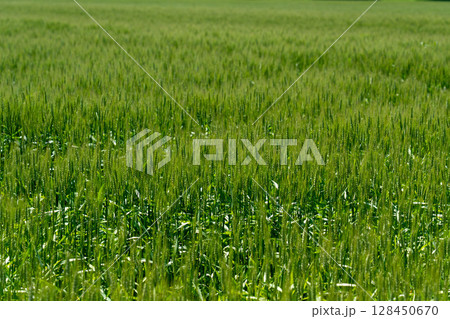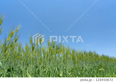 麦畑の成長の定点撮影4-1、2025.4.27.成長途上、穂が出る