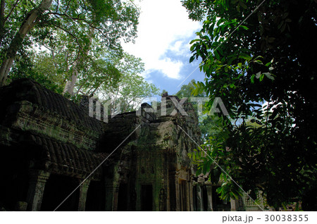 青空に聳え立つ古代遺跡群タ・プローム@タ・プローム、シェムリアップ市、カンボジア