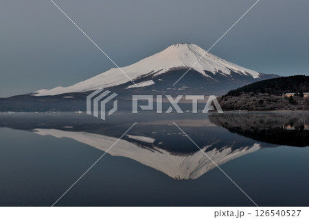 湖面に波が無い山中湖の逆さ富士アップ撮影