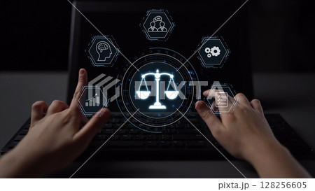 Digital law interface displaying justice scale, highlighting digital law Muxer