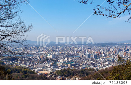 法界院から見た早春の晴れた空と岡山市の街並み 岡山県岡山市北区