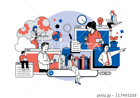 Online Education Illustration with Virtual Learning Scenes