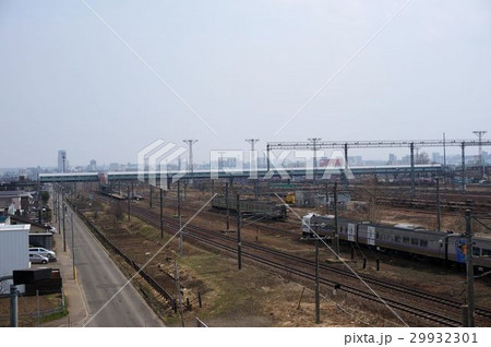 北海道函館市函館駅車庫前の操車場の冬の風景を撮影