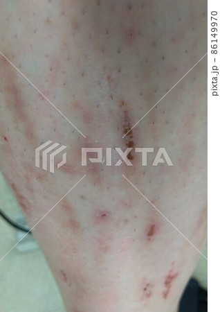 脚の膝の怪我、カサブタ