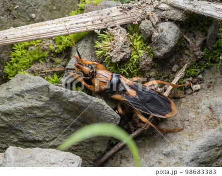 生き物 昆虫 ホソヘリカメムシ、幼虫です。幼虫はアリ似、成虫は飛ぶと蜂に見えるような姿です