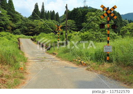 運休が続き雑草で埋もれた肥薩線の踏切(矢岳、真幸間)