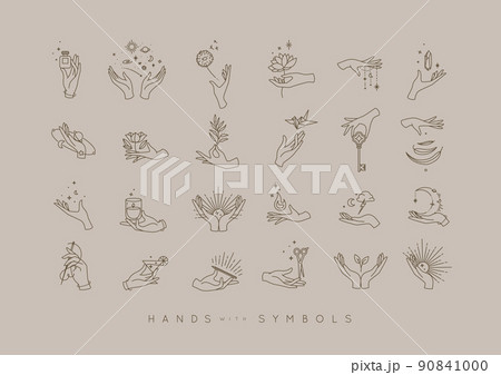 Set of hands with symbols beige