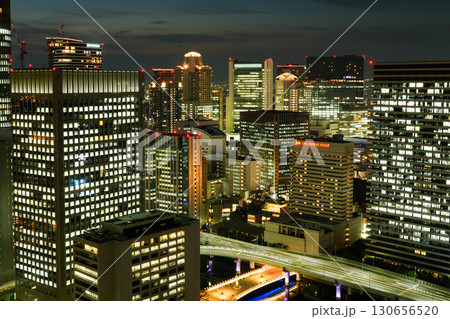 大阪・淀屋橋の高層ビルから見た御堂筋、中之島、大阪駅方面の夜景(2025年9月撮影)