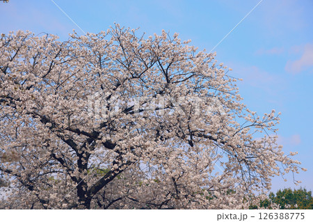 Cherry Blossom Tree in Full Bloom Under Clear Blue