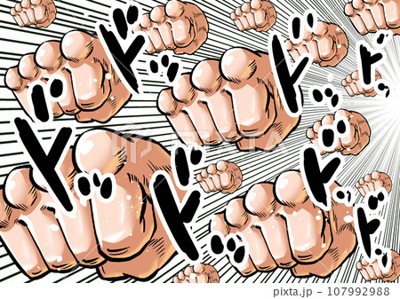 斜めアングルのラッシュパンチする劇画マンガ風イラスト