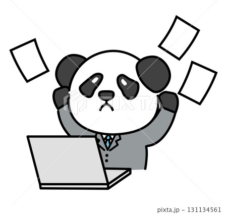 仕事がお手上げ状態のパンダの会社員