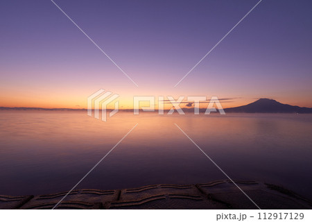 日の出を待つ静かな鹿児島湾のイメージ風景