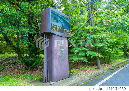 京都府宇治市 天ケ瀬ダムの下流にある放流情報を提供するモニター画面