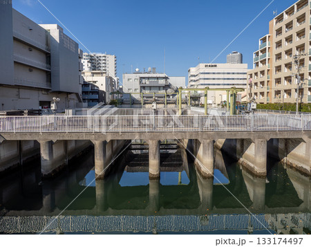 清川橋から見た「清澄排水機場」(東京都江東区)