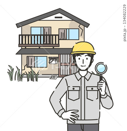 放置住宅を調査する点検員のイラスト