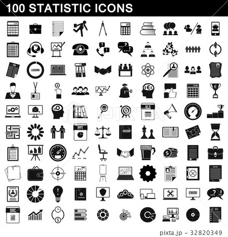100 statistic icons set, simple style