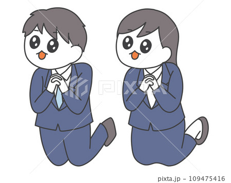 膝をつき祈るポーズをとる男女のイラスト