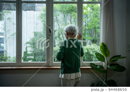 天気を確認するスマホを持ったシニア女性(避難警報・台風・災害)