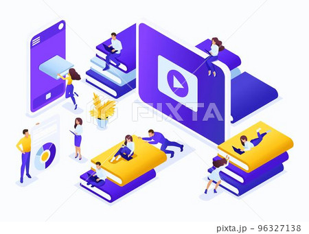 Isometric business concept choose the right your book in our library. Great concept for a Landing page