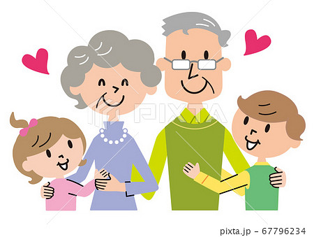 おじいさんを囲む親族たちの幸せな笑顔 イラスト素材