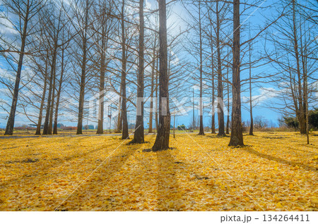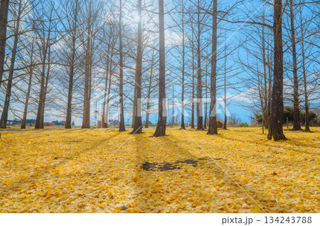 イチョウの木立と落ち葉の絨毯【長野県】