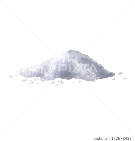 Sea salt scattered. Heap of table salt. Hand drawn watercolor isolated illustration of skin care product or cooking ingredient. Pile of body care scrub. Drawing of eco mineral cosmetic for spa design.
