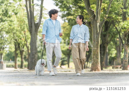 犬の散歩をする夫婦・愛犬家・飼い主・ペットシッター・家族