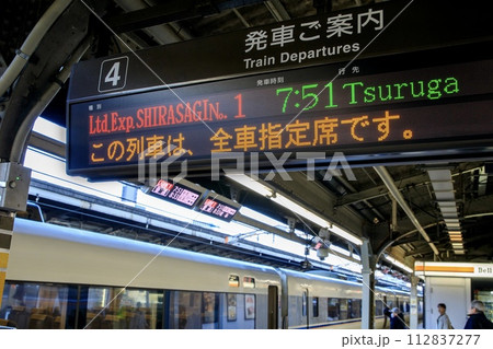 名古屋駅、特急しらさぎの発車表示(敦賀行き)