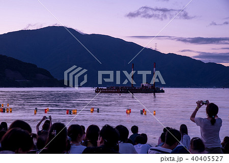 福井 敦賀 気比海岸 とうろう流しと大花火大会 とうろう流しの写真を撮る人