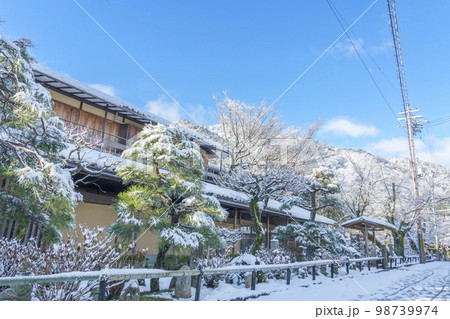 雪景色の湯豆腐嵯峨野(京都府京都市右京区嵯峨天龍寺芒ノ馬場町)
