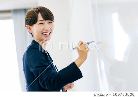 授業をする女性教師 撮影協力:中央工学校附属日本語学校