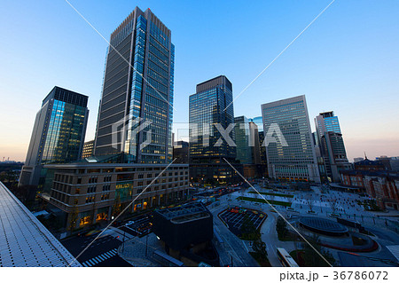 東京駅丸の内駅前広場整備完了後の駅前風景 夕暮れ